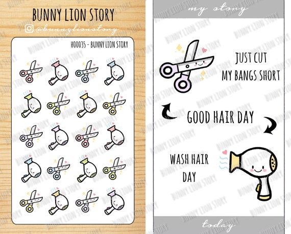 H00035 Haircut Appointment Scissors Hair Dryer Blow Wash Hair Day Cute Kawaii Planner Scrapbook Journal Diary Agenda Decoration Sticker