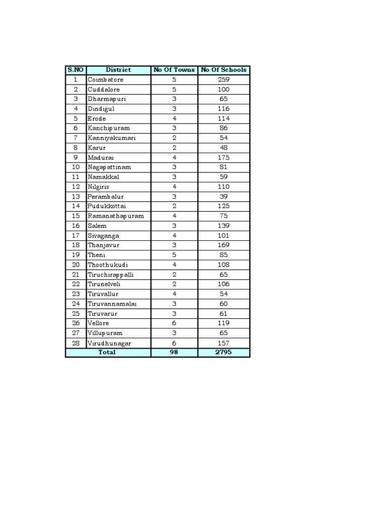 Schools In Tamilnadu As Districtwise