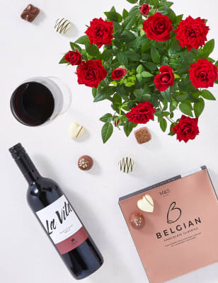 Red Wine Chocolates And A Rose Plant