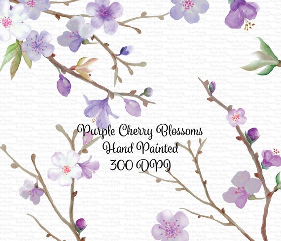 Digital Watercolour Purple Cherry Blossom Clip Art High Etsy