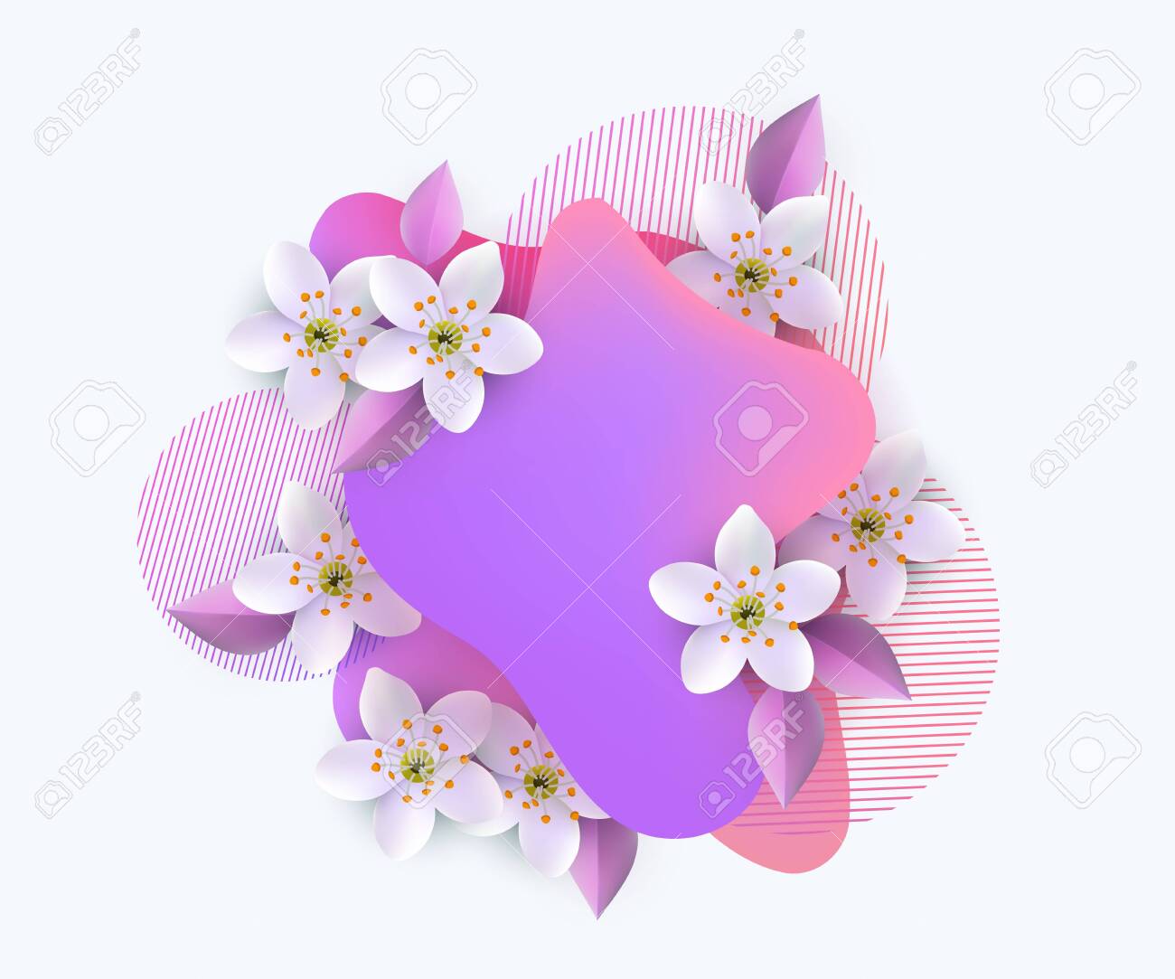Spring Cherry Blossom Pink Beautiful Sakura With Papercraft