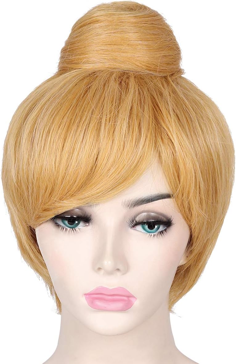 Princess Tinker Bell Tinkerbell Short Blonde Hair With Bun Wig